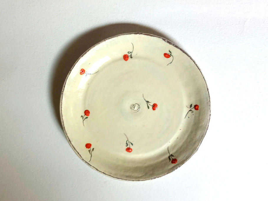 צלחת קטנה בגוון בז' מעוטרת פרחים